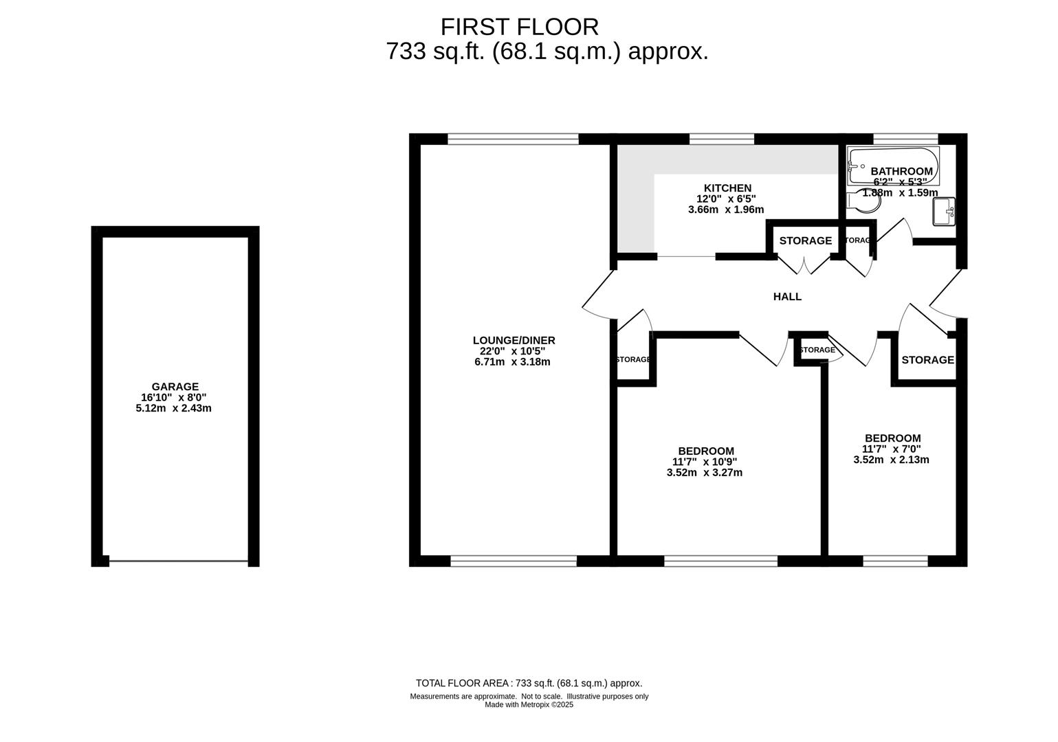 Bedroom Two - 3.52 x 2.13 (11'6" x 6'11") -
