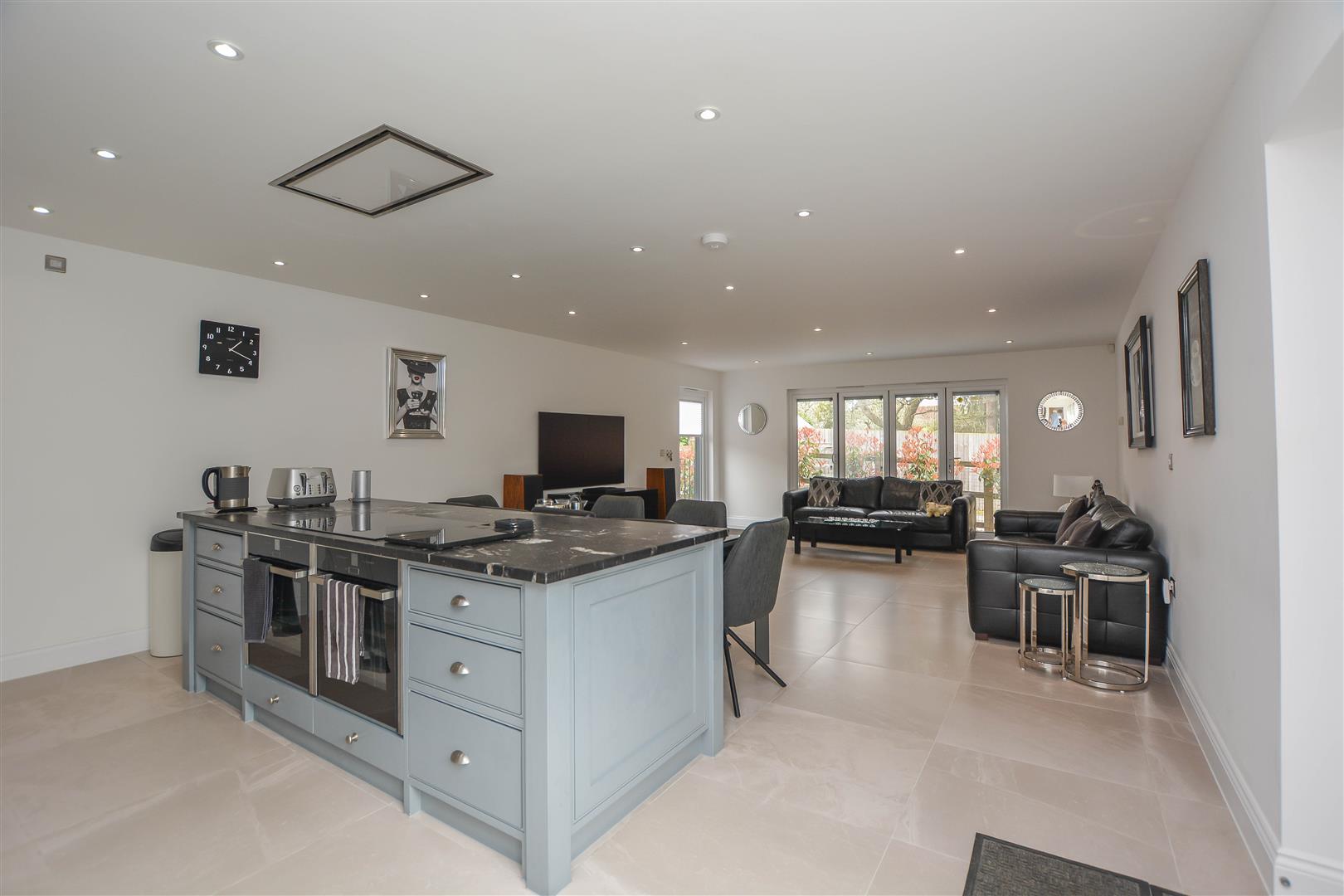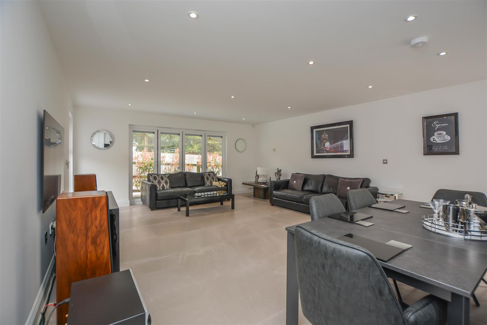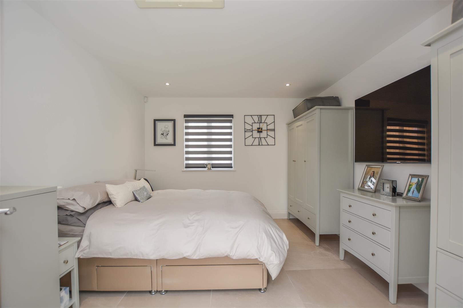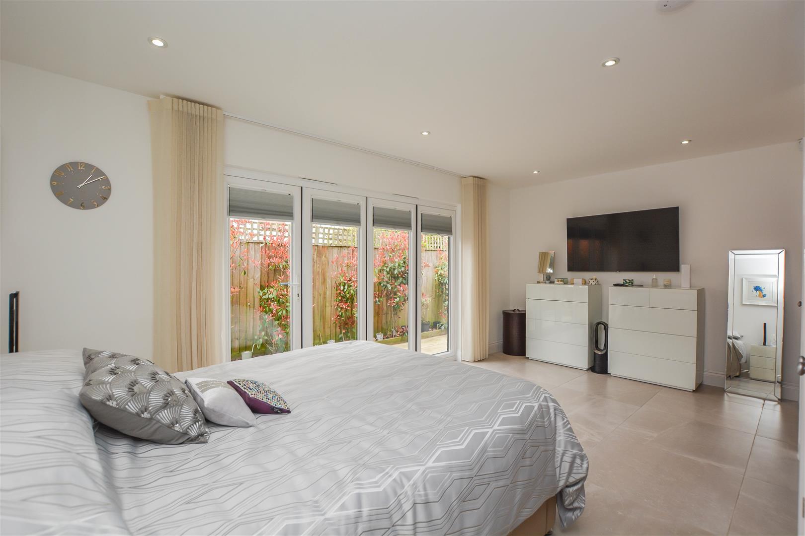 The internal accommodation begins with a spacious open-plan living/kitchen area, featuring granite work surfaces, bespoke cabinetry and integrated appliances. The living area is enhanced by bi-fold doors, allowing for an abundance of natural light and seamless access to the outside space. The principal bedroom benefits from built-in wardrobes, a contemporary ensuite shower room, and bi-fold doors opening onto a private courtyard garden. There are two further well-proportioned double bedrooms, served by a luxurious four-piece family bathroom.