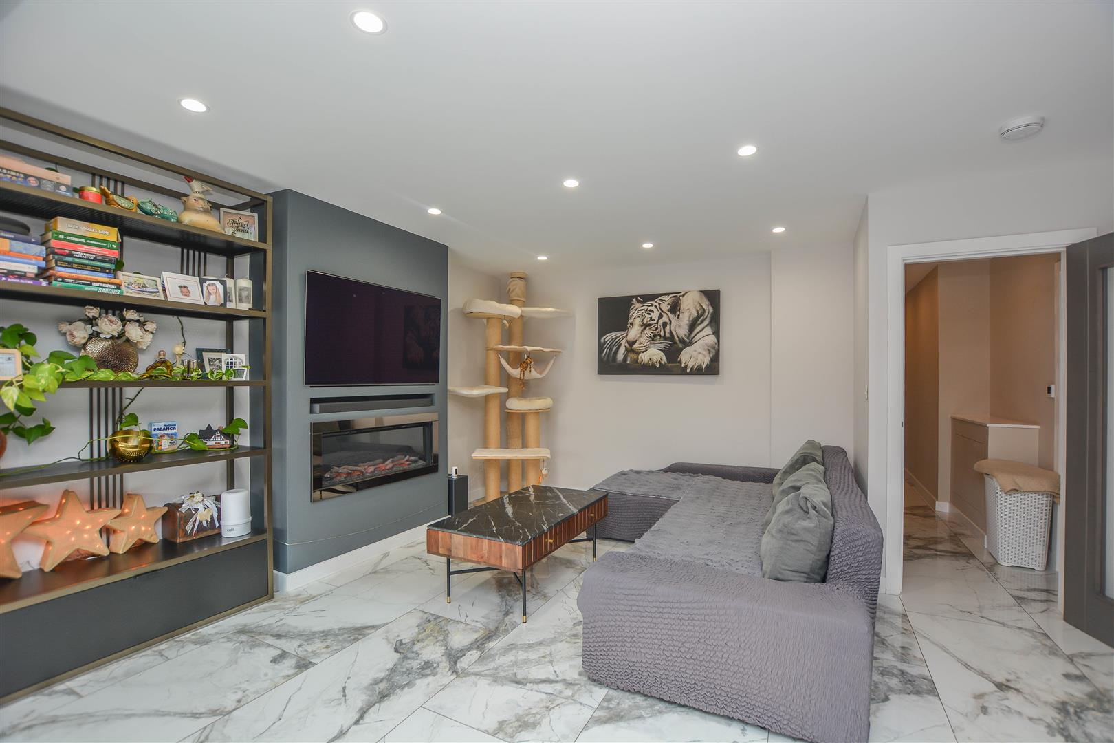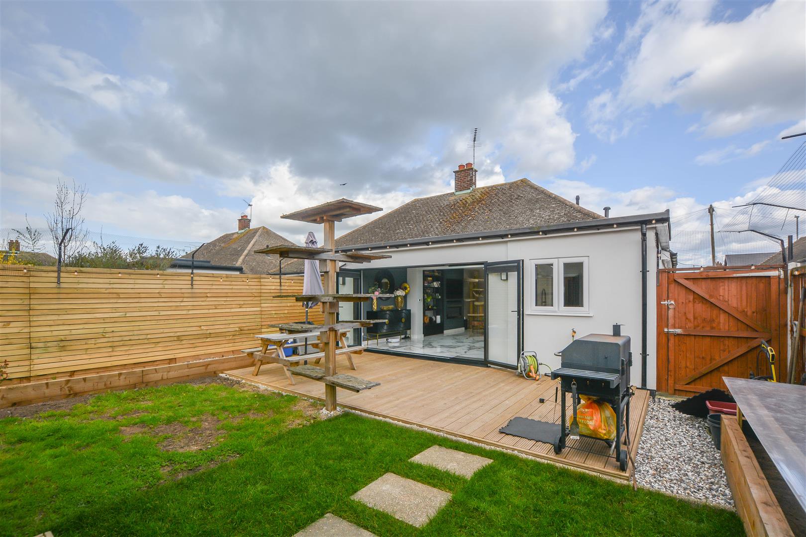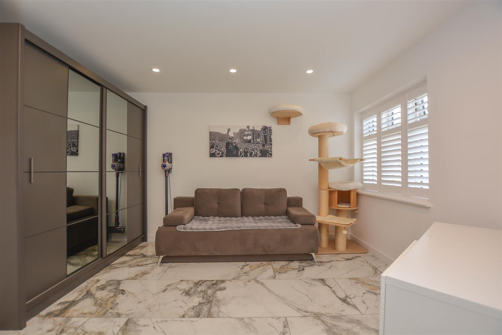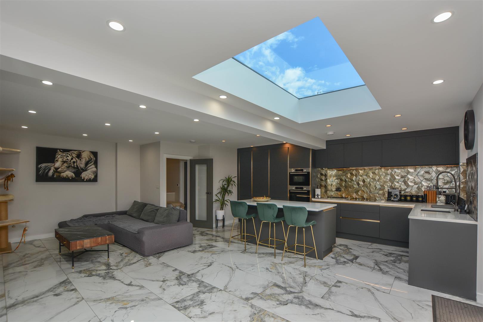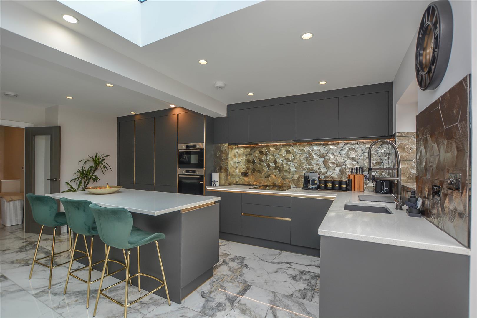 The internal accommodation begins with a useful entrance porch leading into a welcoming hallway, which provides access to all rooms. The property benefits from underfloor heating throughout, adding a touch of comfort and efficiency. To the rear, an impressive open-plan kitchen and lounge create an ideal space for both everyday living and entertaining, enhanced by a large skylight and bi-fold doors that open seamlessly onto the garden. The stylish kitchen is fitted with sleek cabinetry, granite work surfaces, a range of integrated appliances, and a convenient boiling water tap.