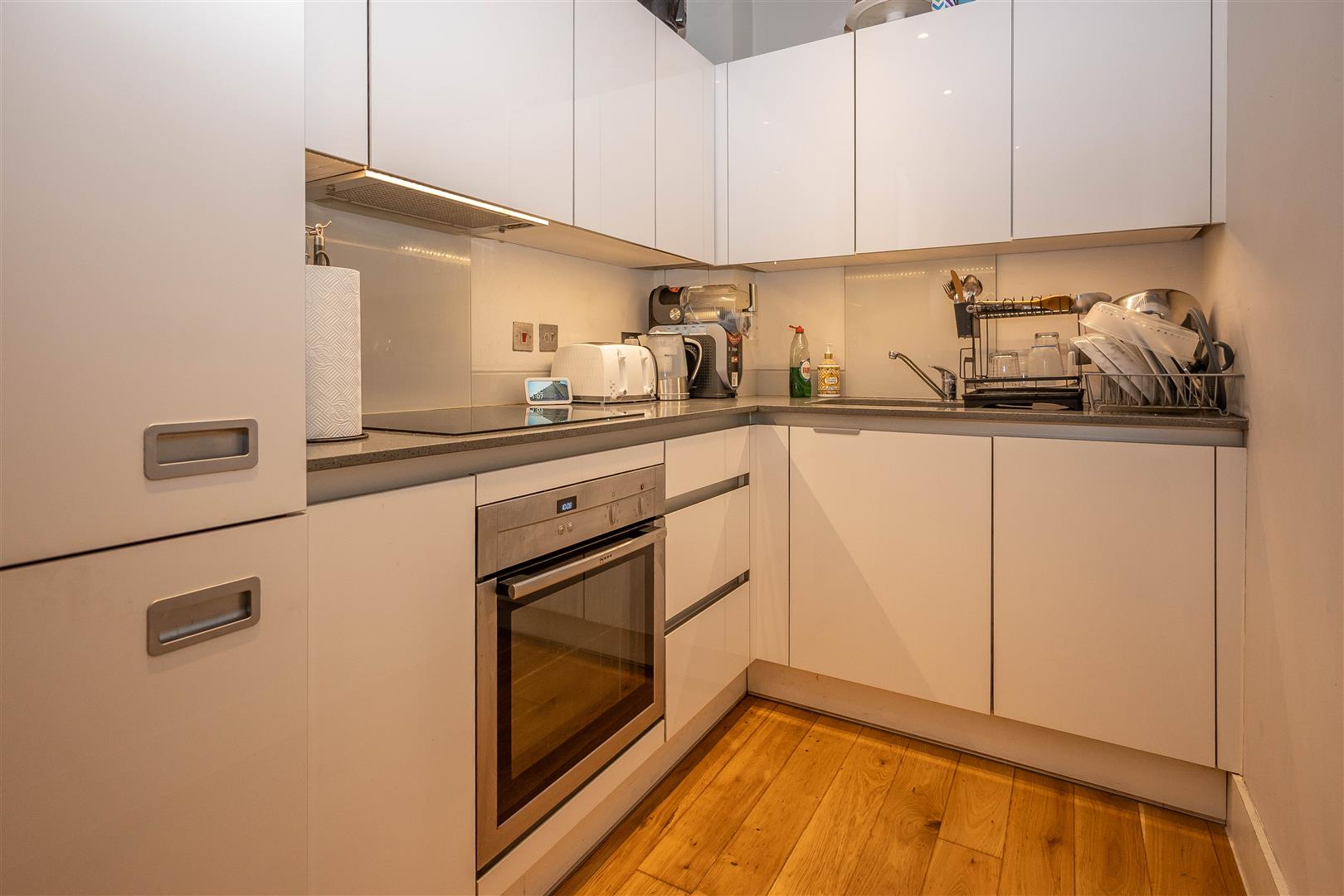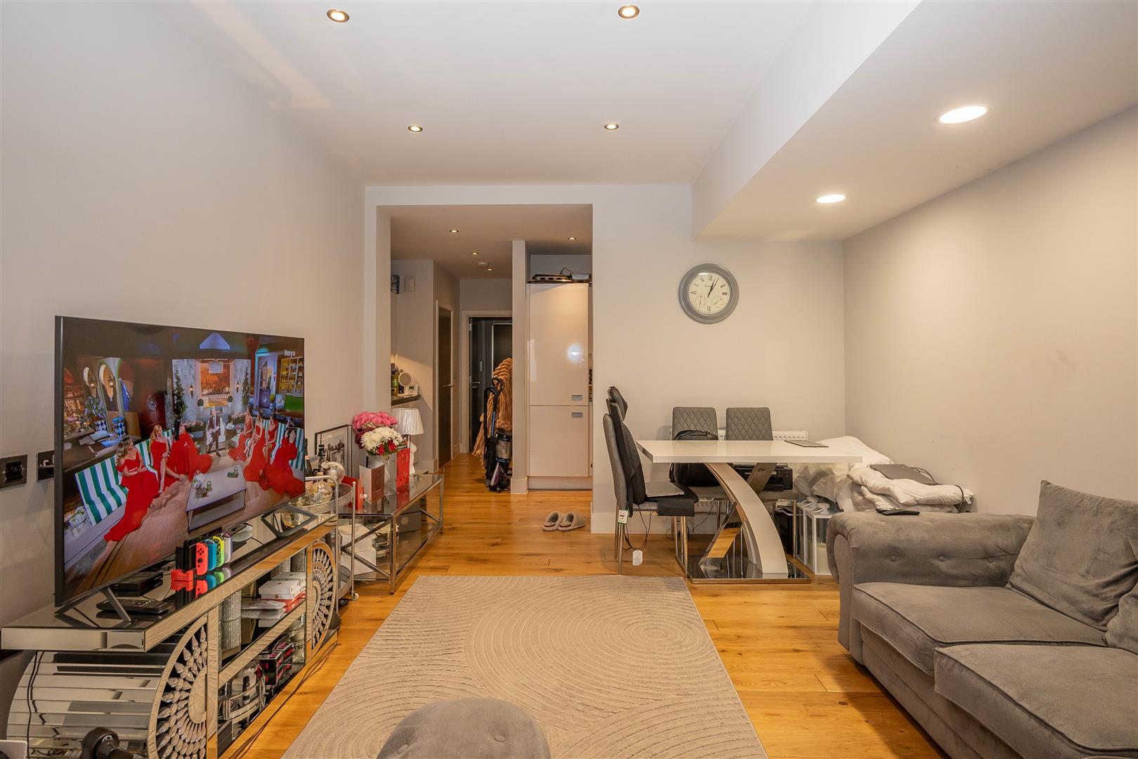 Offered with no onward chain, the property benefits from its own private entrance leading into a spacious living room. The well-designed kitchen is fitted with a range of eye and base level units, complemented by integrated appliances. An inner lobby provides access to a comfortable double bedroom and a modern bathroom, whilst externally, the apartment further benefits from an allocated parking space.