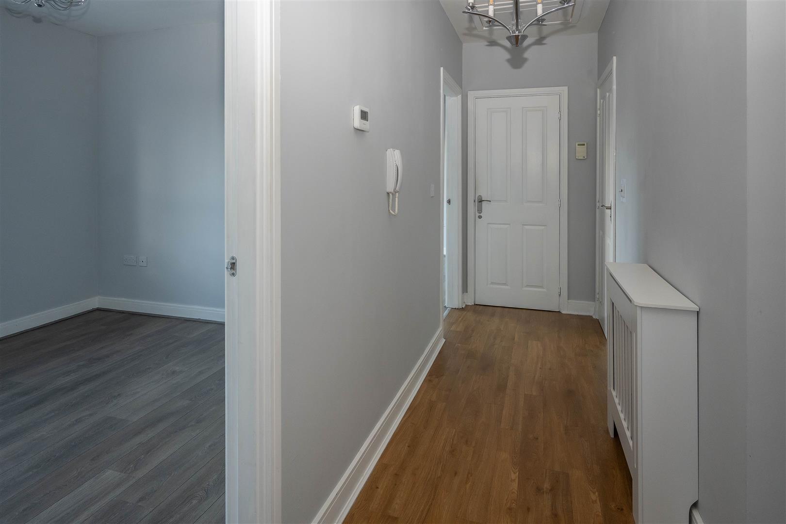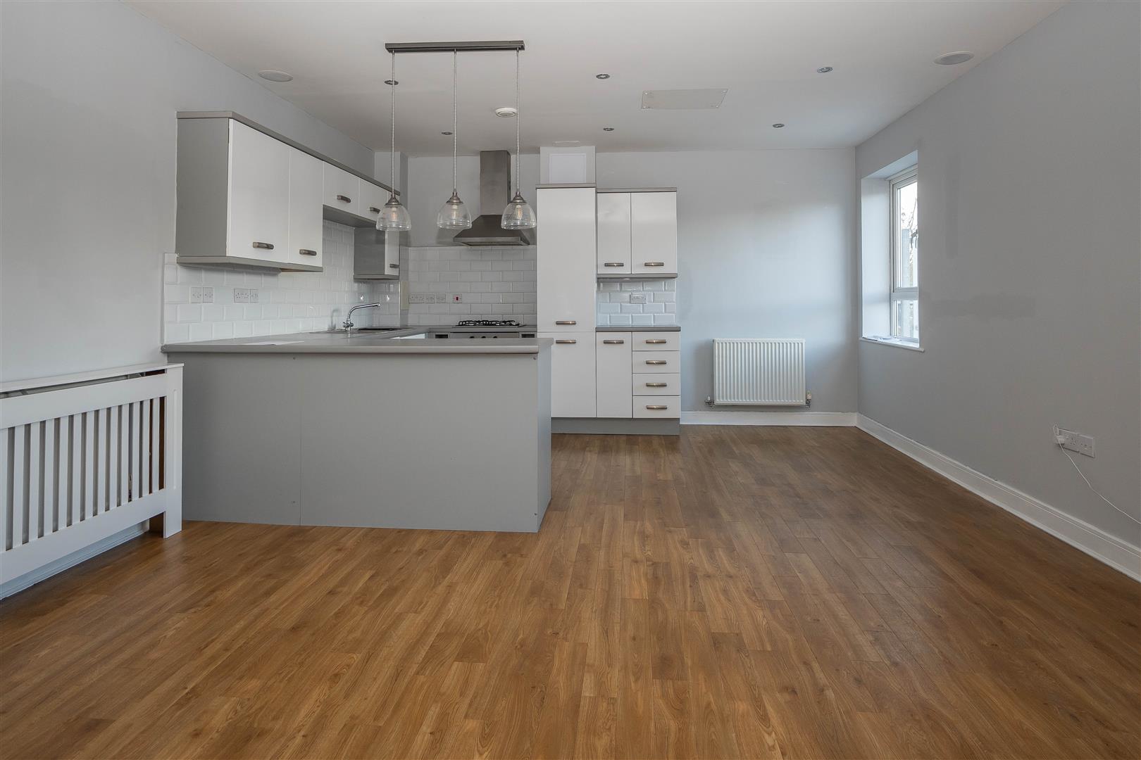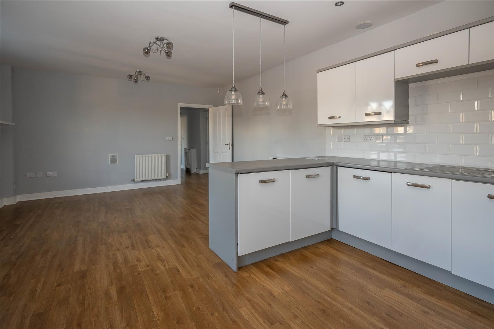 Beautifully presented throughout, the property offers a spacious open-plan kitchen, lounge and dining area, fitted with contemporary eye and base level units, generous worktop space and a range of integrated appliances. The principal bedroom boasts a dressing area and sliding doors opening onto a private balcony, where far-reaching views across the town can be enjoyed. A second well-proportioned bedroom and a stunning four-piece suite bathroom complete the accommodation.