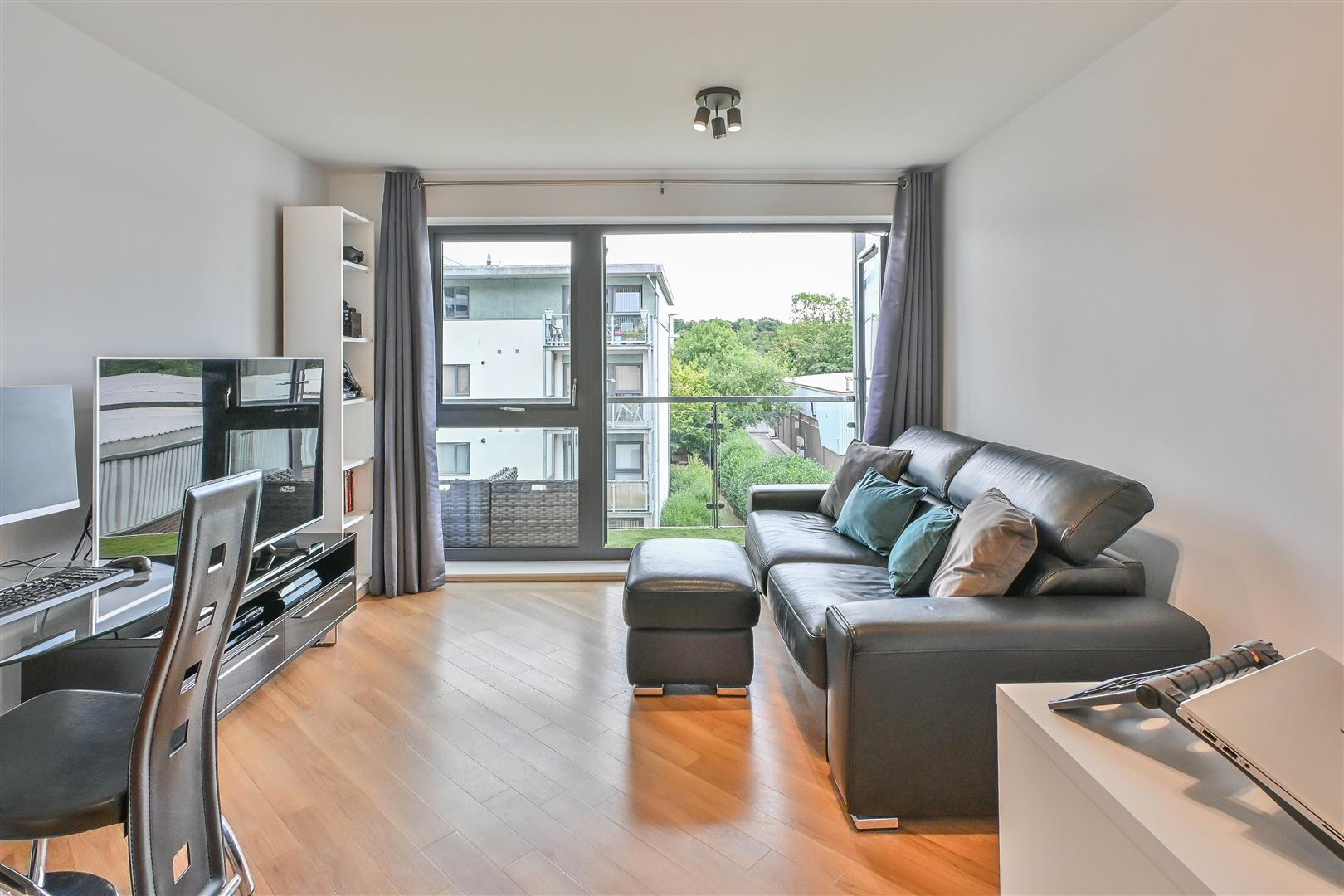 The internal accommodation comprises a bright and spacious open-plan lounge and kitchen, opening onto a private balcony - perfect for relaxing outdoors. The modern kitchen is complemented by sleek units and integrated appliances. A generous double bedroom with fitted wardrobes and a stylish contemporary bathroom complete the living space.