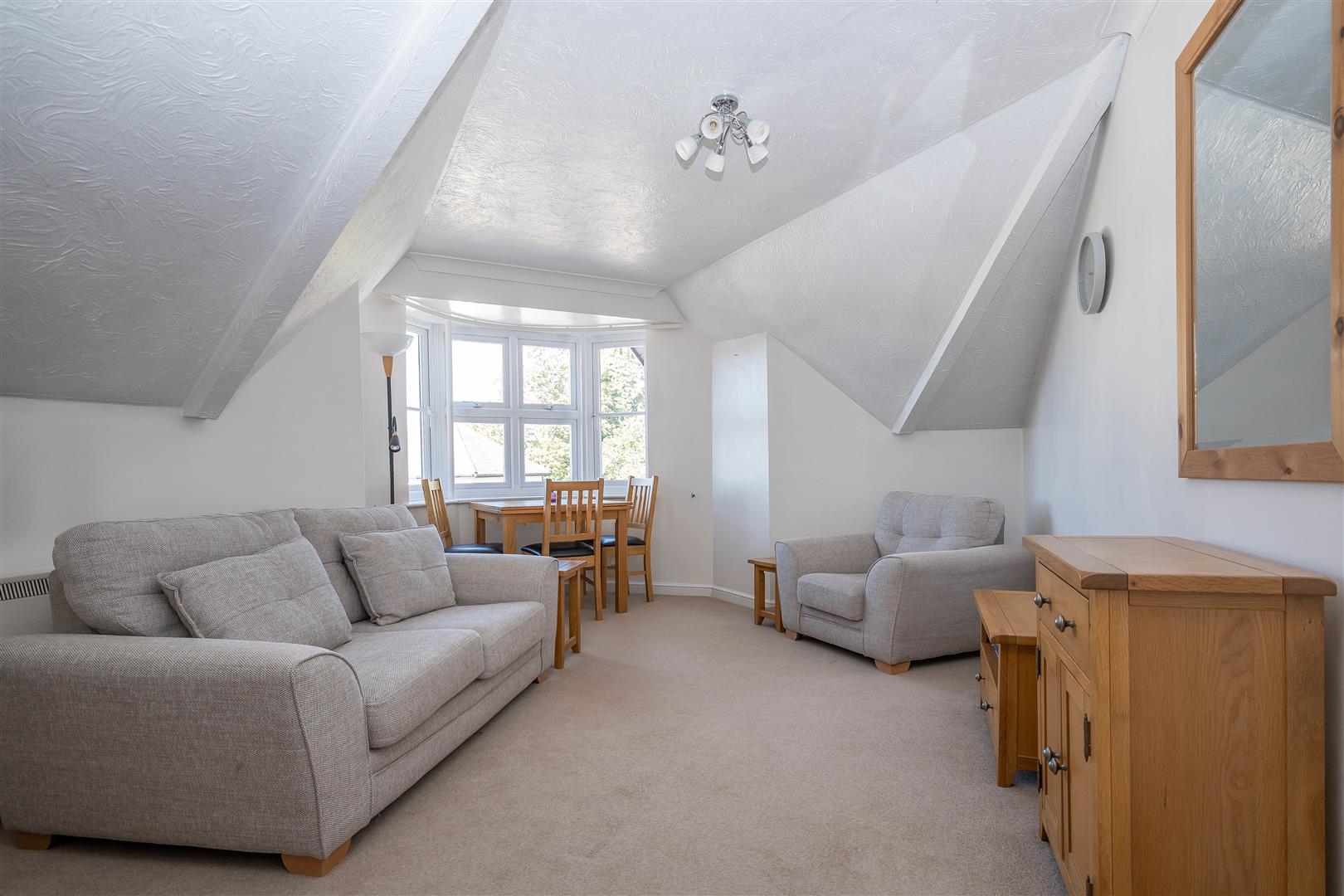 A lift takes you to the second floor and on entering the apartment, a large hallway with a storage and airing cupboard, gives access to a bright and spacious lounge, with a feature bow window which lies open to a modern fitted kitchen with plenty of eye and base level units and a window to the side. There is an attractive contemporary shower room and two good sized bedrooms, one of which has fitted wardrobes. There is also an alarm system for peace of mind.