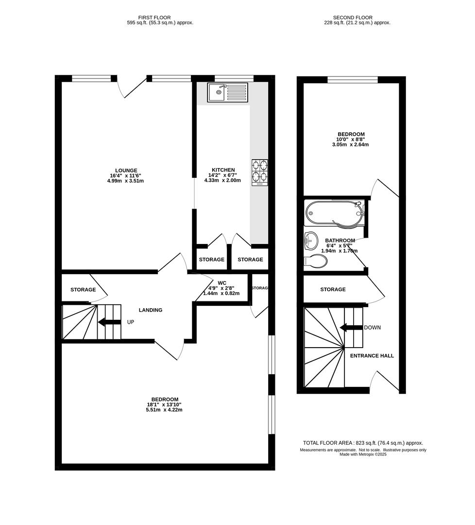 Accessed via a secure entry system with stairs to all floors, the apartment begins on the second floor with an entrance hall featuring built-in storage. This level also includes a fully tiled bathroom and a comfortable bedroom. A staircase descends to the first floor, where you'll find a second generous bedroom, a convenient WC, and a bright, spacious lounge with a Juliette balcony that showcases stunning views across the surrounding countryside. The lounge flows seamlessly into a well-equipped kitchen, ideal for modern living. Externally, the development benefits from well-maintained communal gardens and residents' parking.