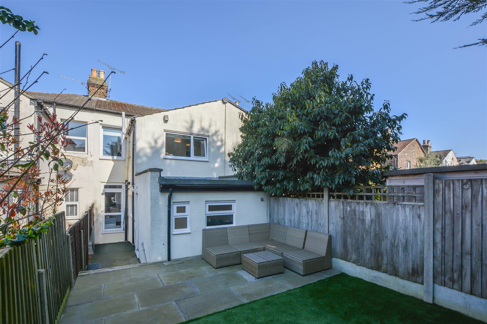 Externally, the property benefits from a south-facing rear garden, beginning with a paved patio area and leading onto an artificial lawn, with rear access. On-street parking is available by permit.