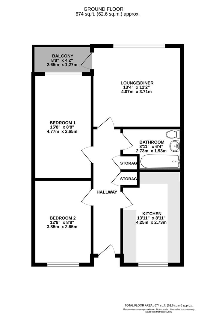 Balcony - 2.65 x 1.27 (8'8" x 4'1") -