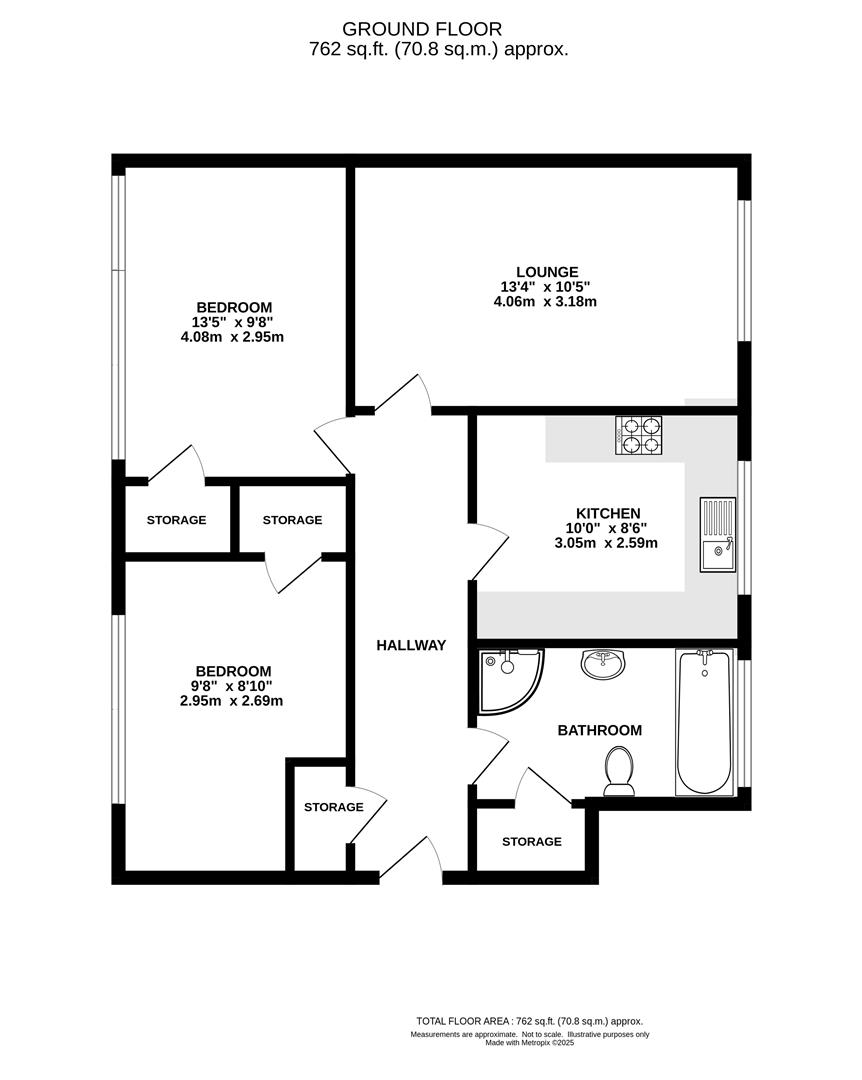 The property offers a well-equipped kitchen, a generously sized lounge, two double bedrooms, and a modern bathroom complete with both a bathtub and a separate shower. Ample built-in storage adds to the practicality of the home, while an allocated parking space ensures convenient off-street parking.