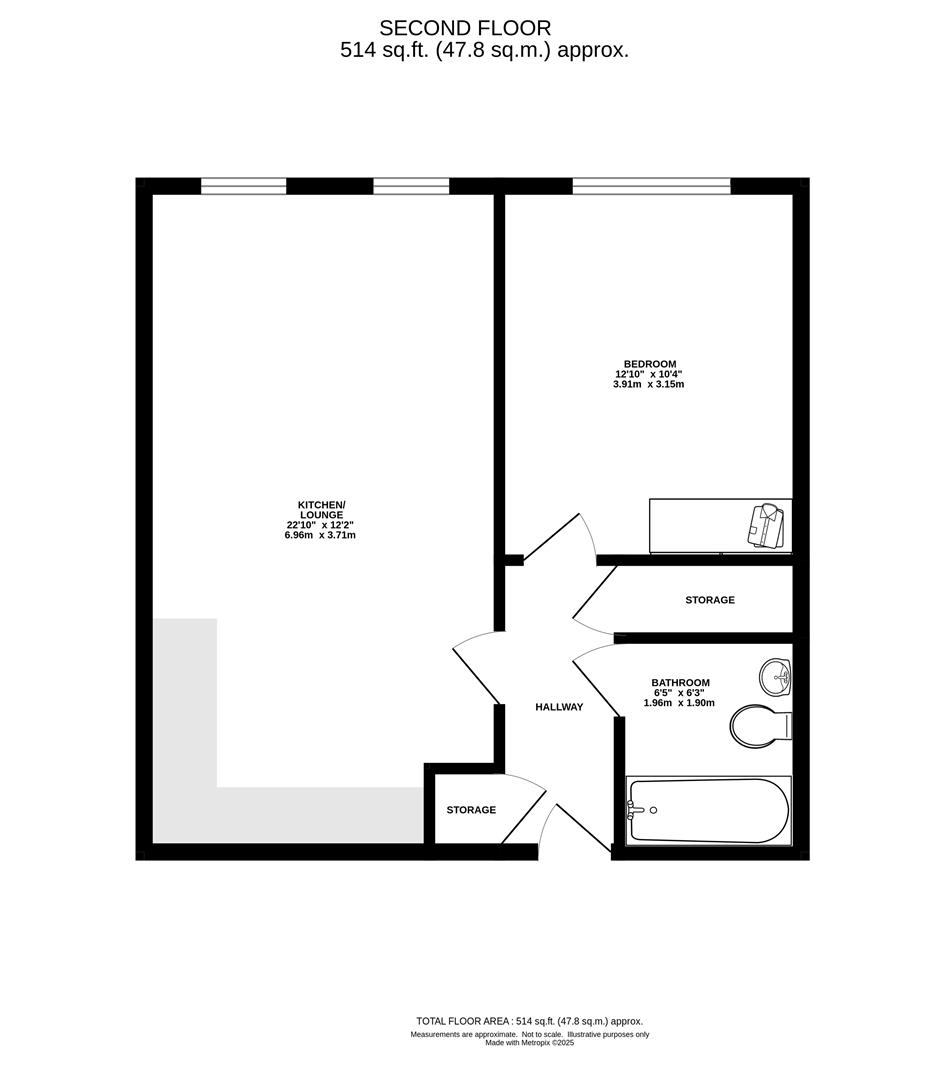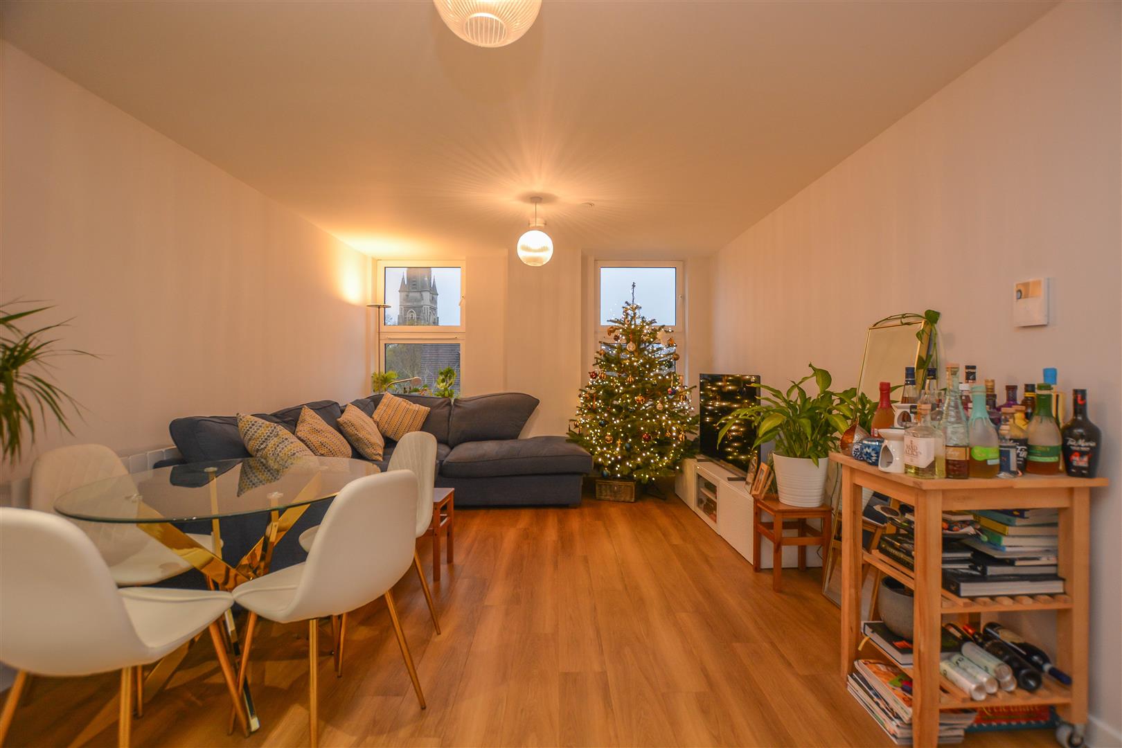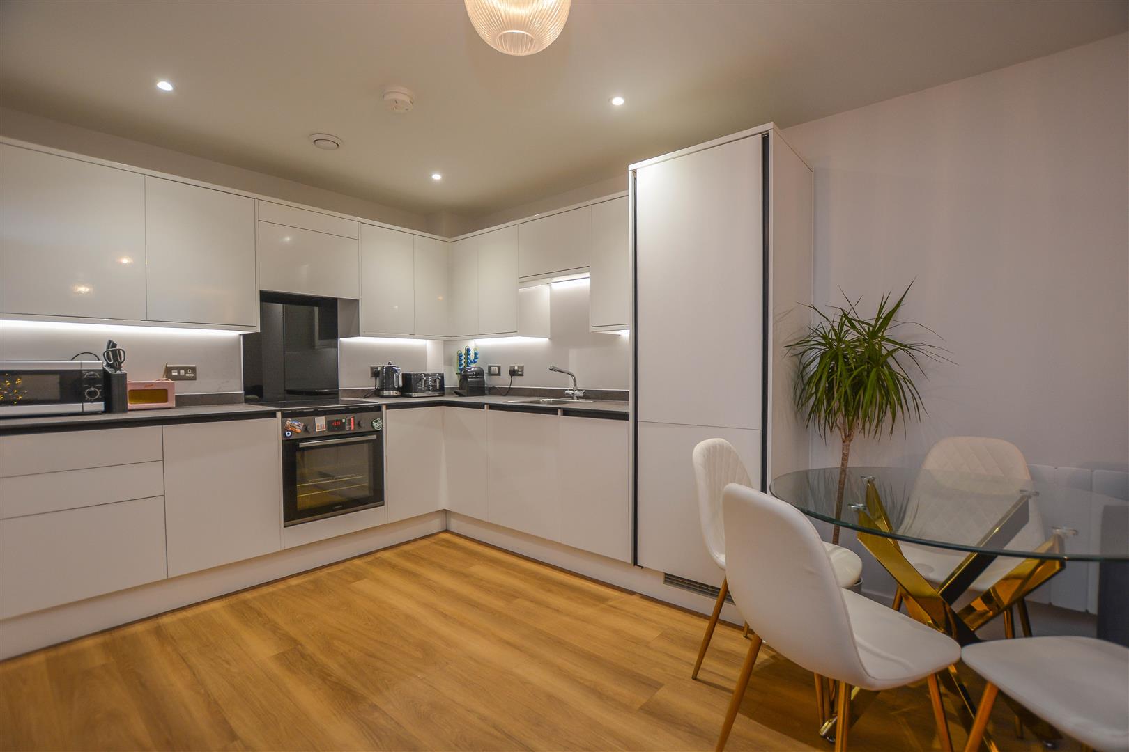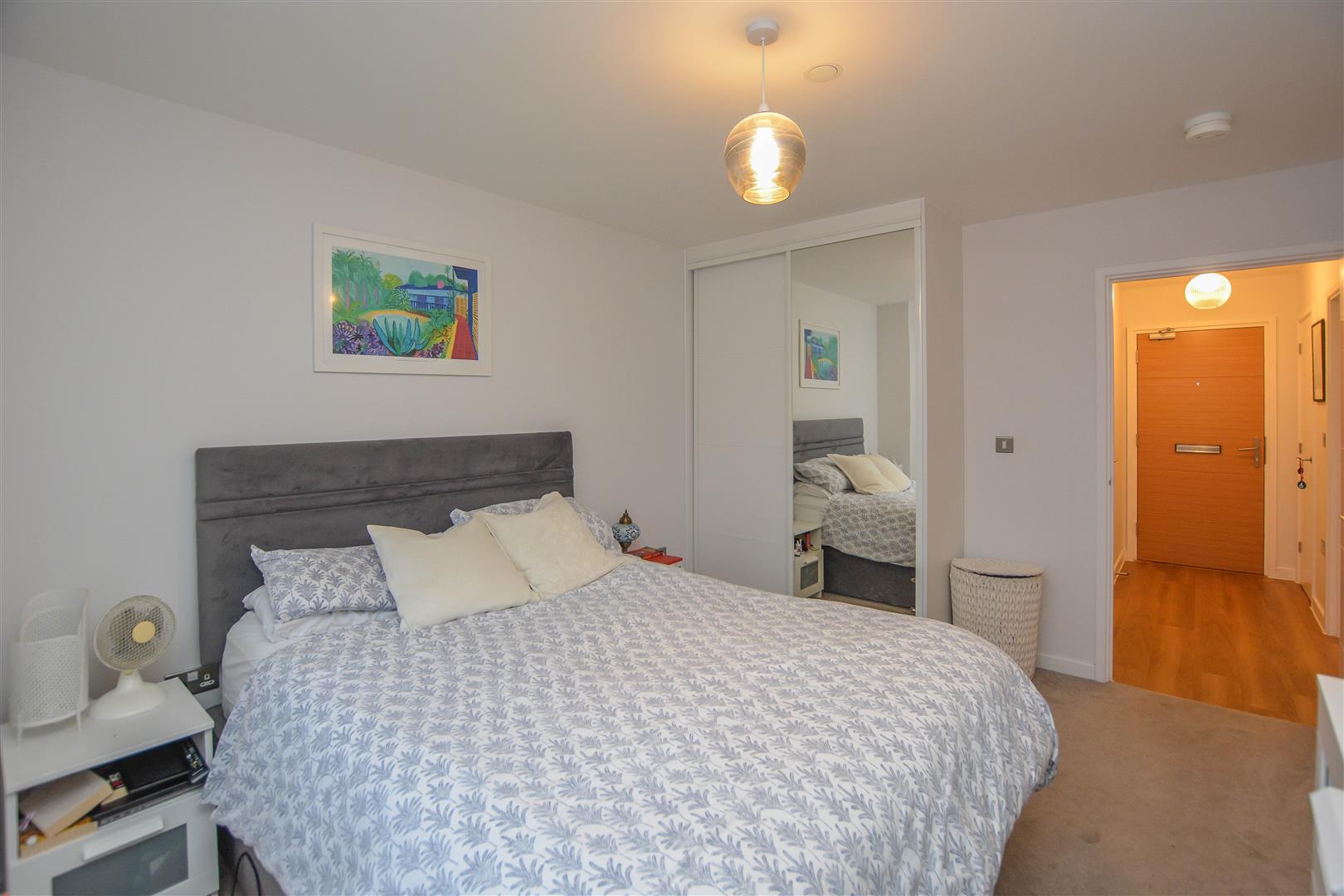 Beautifully presented throughout, the property opens with a welcoming entrance hall featuring built-in storage. From here, a comfortable lounge seamlessly connects to a modern, well-appointed kitchen, complete with integrated appliances, sleek eye and base level units, and ample worktop space. The spacious double bedroom benefits from fitted wardrobes and is served by a contemporary shower room. Residents enjoy a secure communal entrance with an entry phone system, leading to an elegant reception area with both lift and stair access to all floors. Additional features include an allocated parking space within the secure undercroft car park and access to a stunning communal roof terrace offering panoramic views.