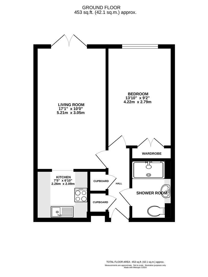 Situated in a sought-after retirement development, we are pleased to offer for sale this well-presented one-bedroom retirement apartment, suitable for the over 60's, which is being offered with no onward chain. The property is situated on the ground floor and benefits from double doors leading out to the gardens from the living room. The kitchen has a good selection of eye and base level units set in contrasting worktops and finally a modern shower room completes the internal layout. Plenty of storage is available in the hallway and there are built-in wardrobes in the bedroom.