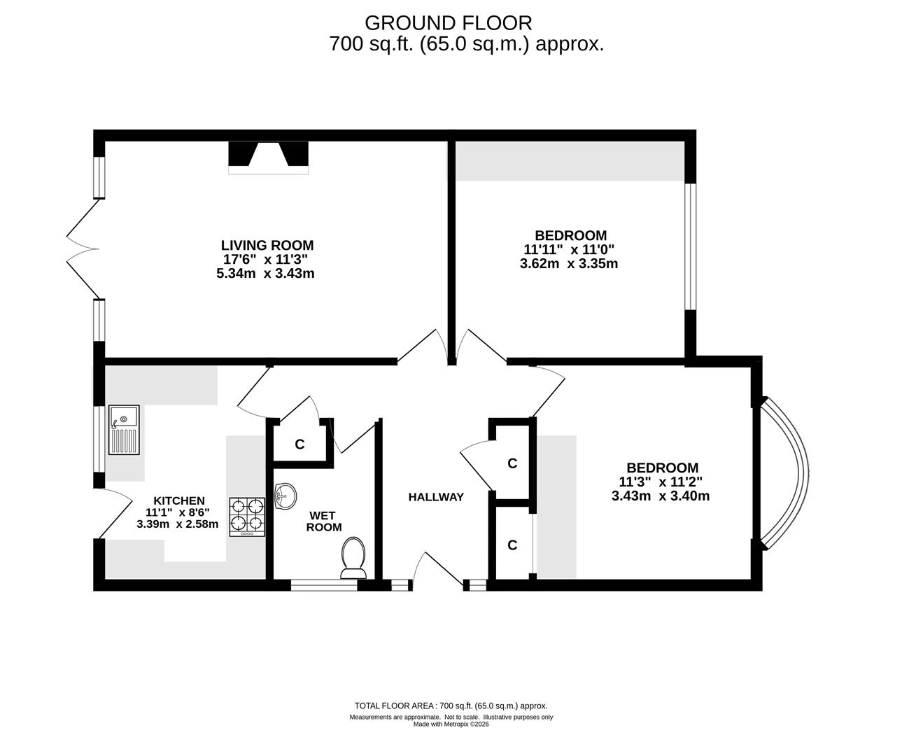 Positioned at the front of the property are two well-proportioned double bedrooms, while a wet room completes the accommodation.