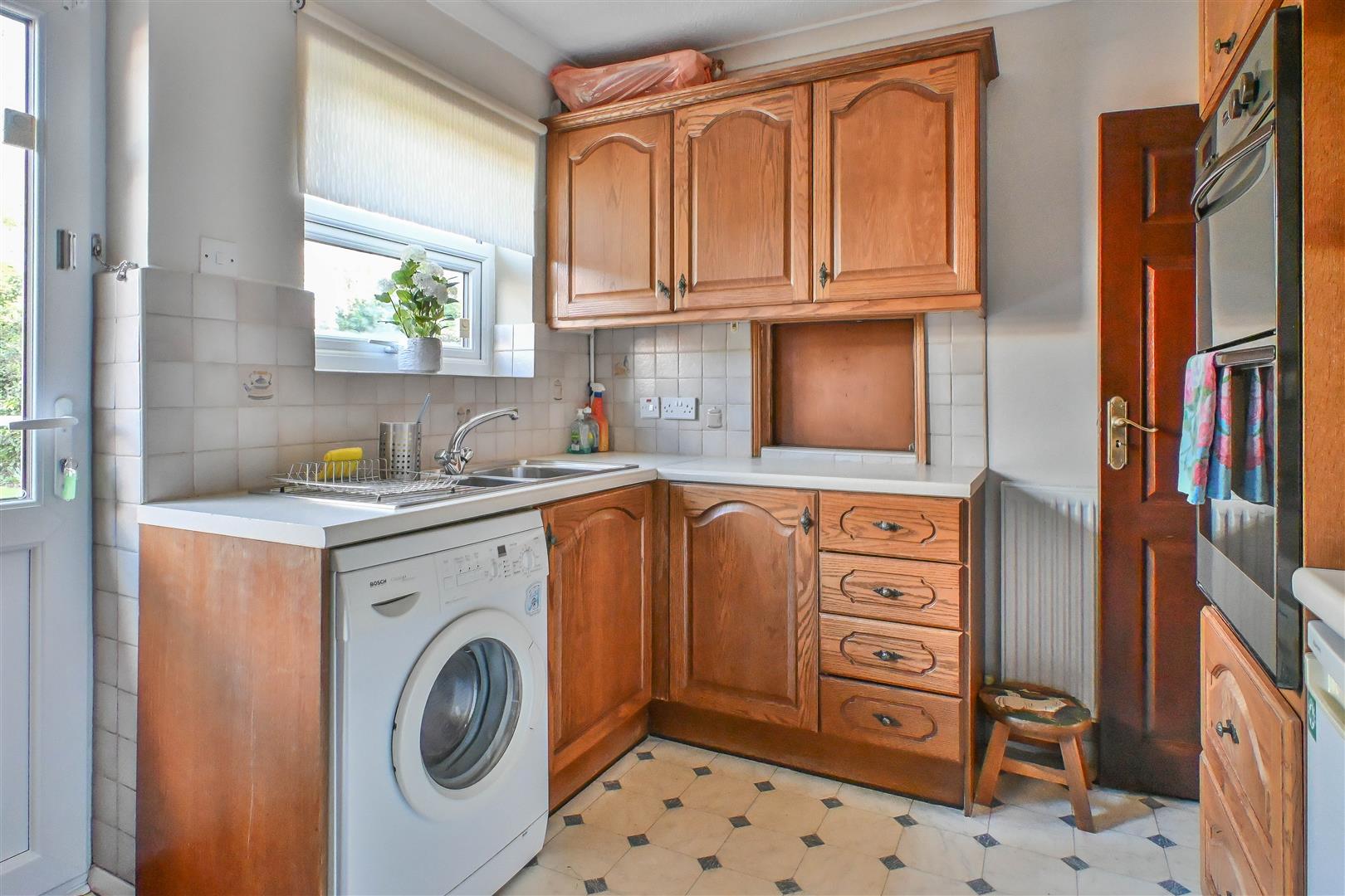 The internal accommodation begins with a welcoming entrance hall providing access to all rooms. To the rear, a bright and spacious lounge features a fireplace and French doors with glazed side panels overlooking and opening onto the rear garden. The kitchen is fitted with a range of eye and base level units, offers ample space for white goods, and benefits from a window and door leading directly outside.