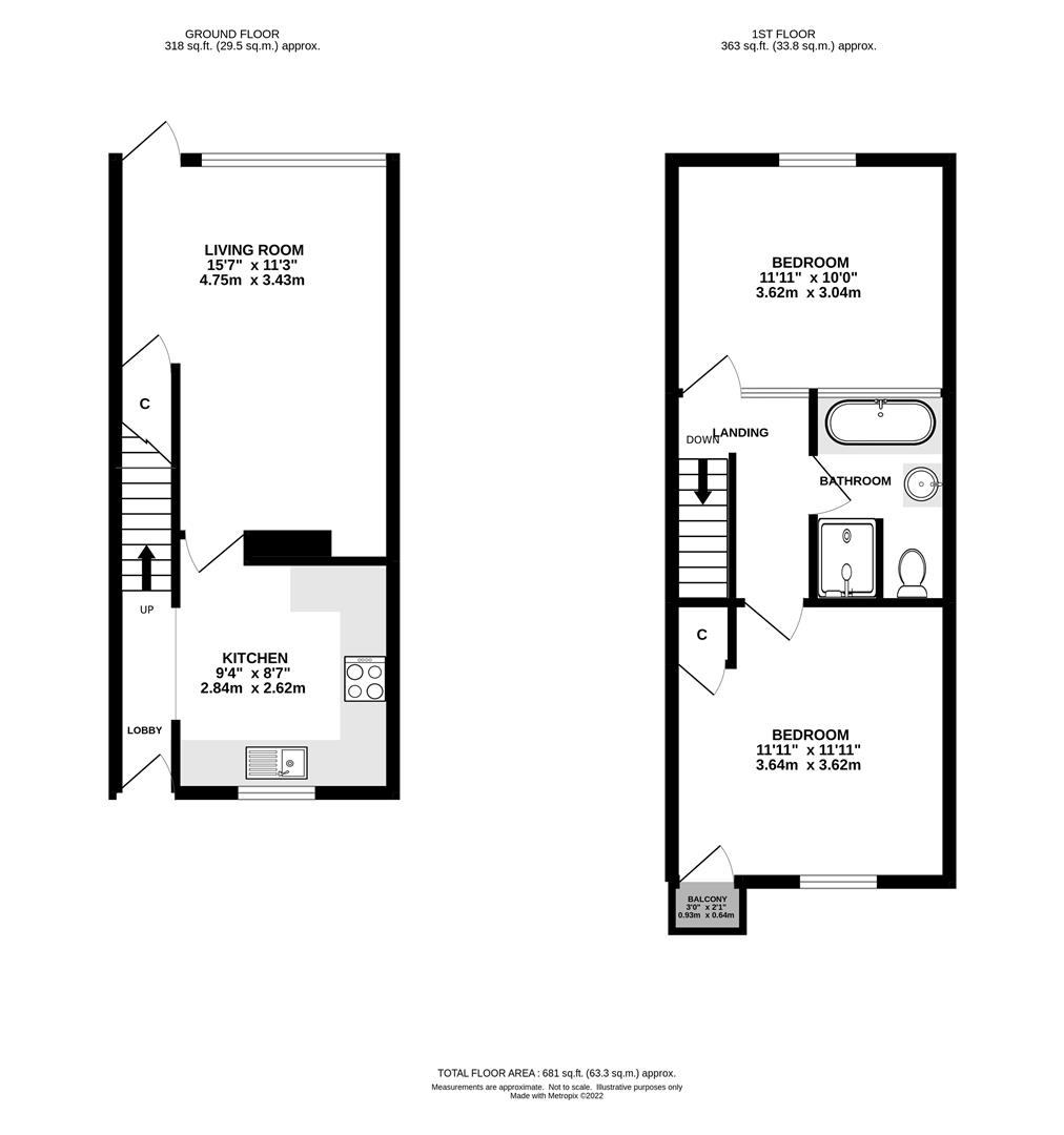 The property is located less than 20 minutes walk into Brentwood Town Centre, with its array of shops and mainline train station, with the recently opened Elizabeth Line and fast trains into London. In addition to the two double bedrooms, one of which has access to a small balcony overlooking the front; further accommodation for this home comprises of a fitted kitchen with integrated oven and hob with extractor above and ample space for free standing appliances, a spacious living room and a first floor, fully tiled, contemporary style bath/shower room with walk-in shower, bath, w.c. and wash hand basin set into vanity unit. Parking is provided by way of an allocated parking space close by.