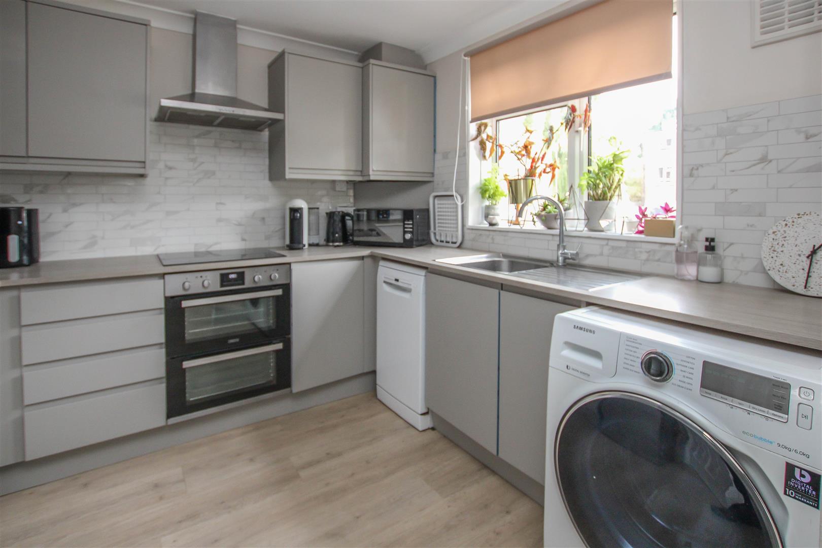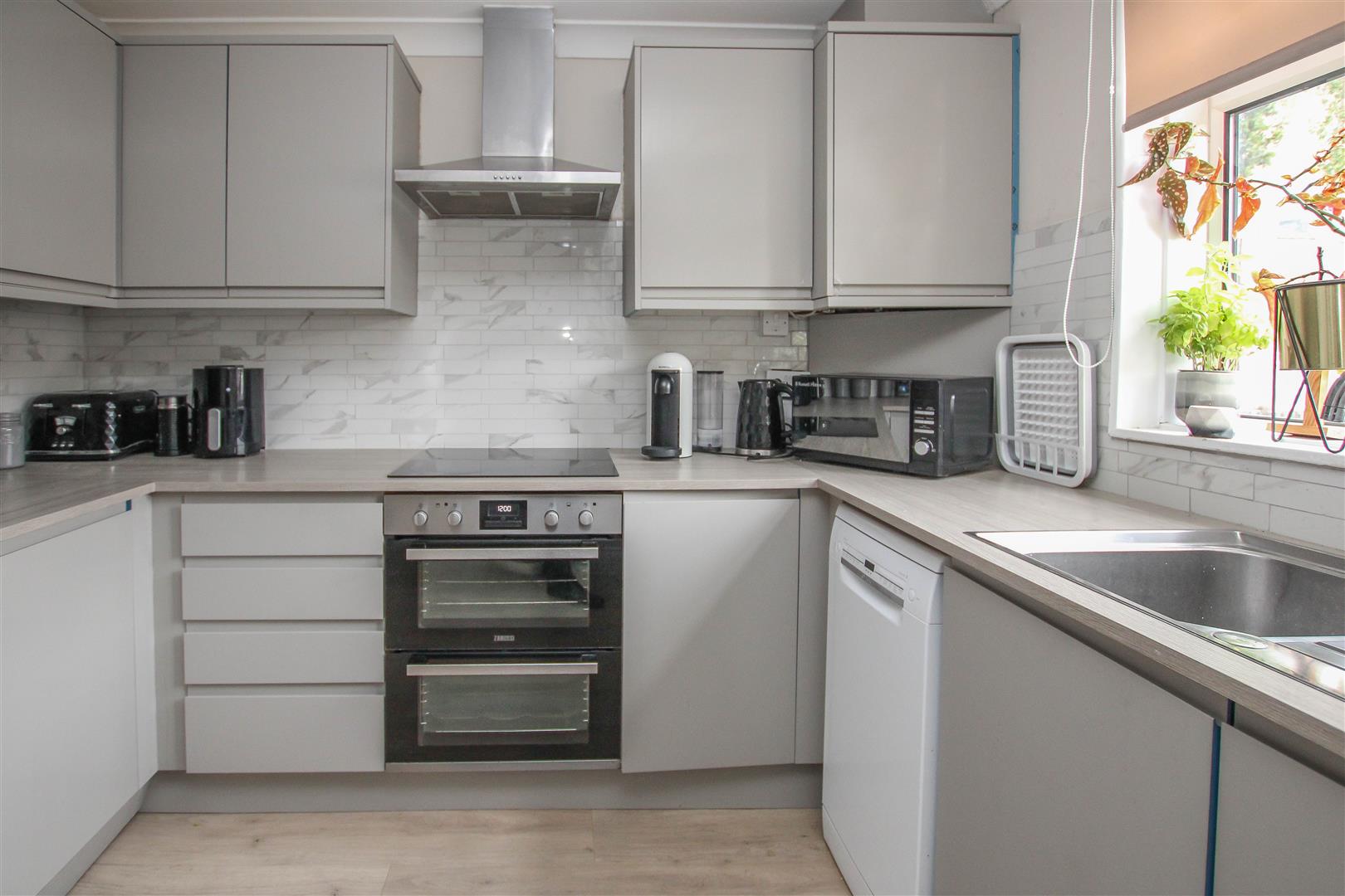 Kitchen - 2.84m x 2.62m (9'4 x 8'7) - Window to front aspect. Fitted in a range of wall and base units with integrated appliances to include : oven and hob with extractor above. Further space for appliances.