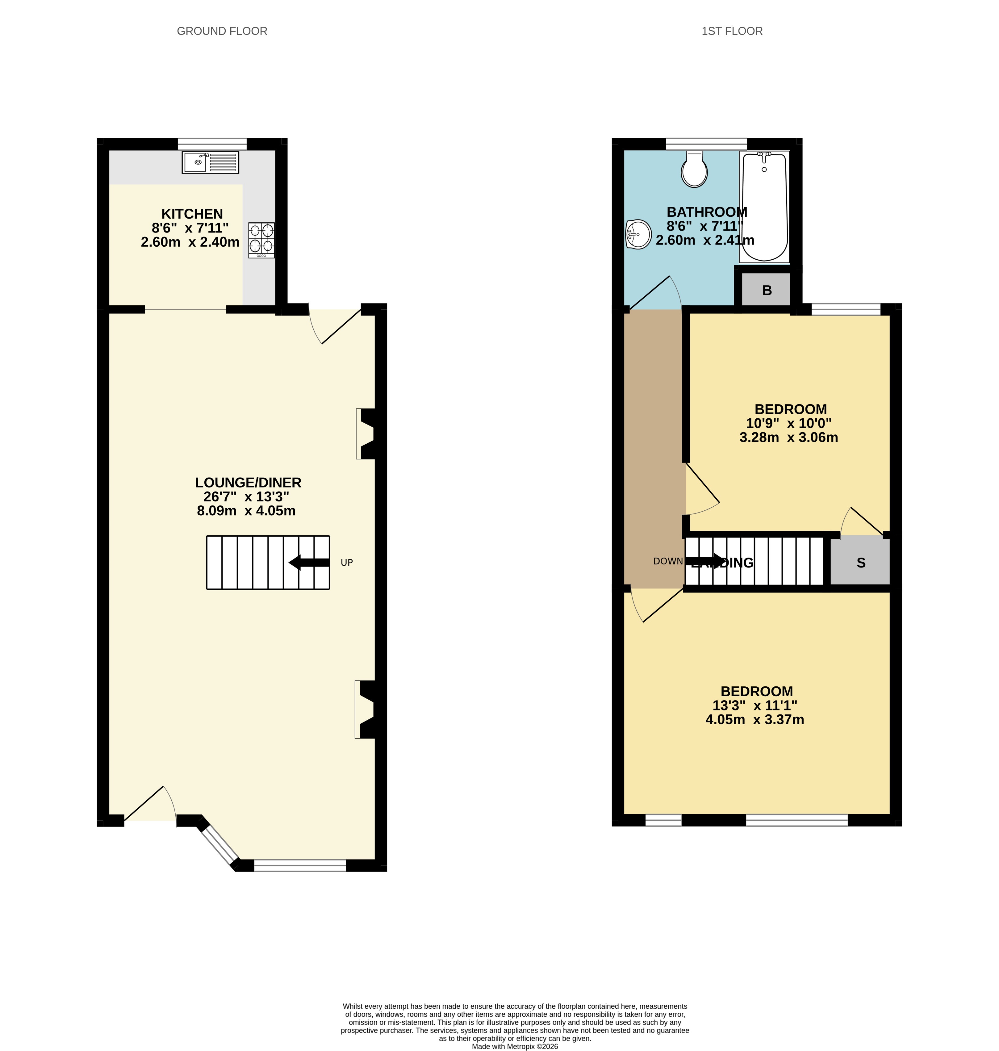 The ground floor compromises a bright and generously sized lounge with open-plan access, creating a versatile living space. To the first floor, there are two well-proportioned bedrooms, including a spacious main bedroom with plenty of natural light, along with a modern family bathroom.