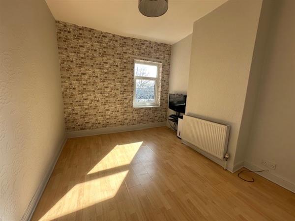 Rear-facing uPVC double glazed window, laminate flooring and radiator.